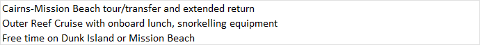 offering Mission Beach as more than just a self-drive destination. - For our day return tour (without staying overnight in Mission Beach) book our Outer Reef Snorkel & Dunk Island Day Tour